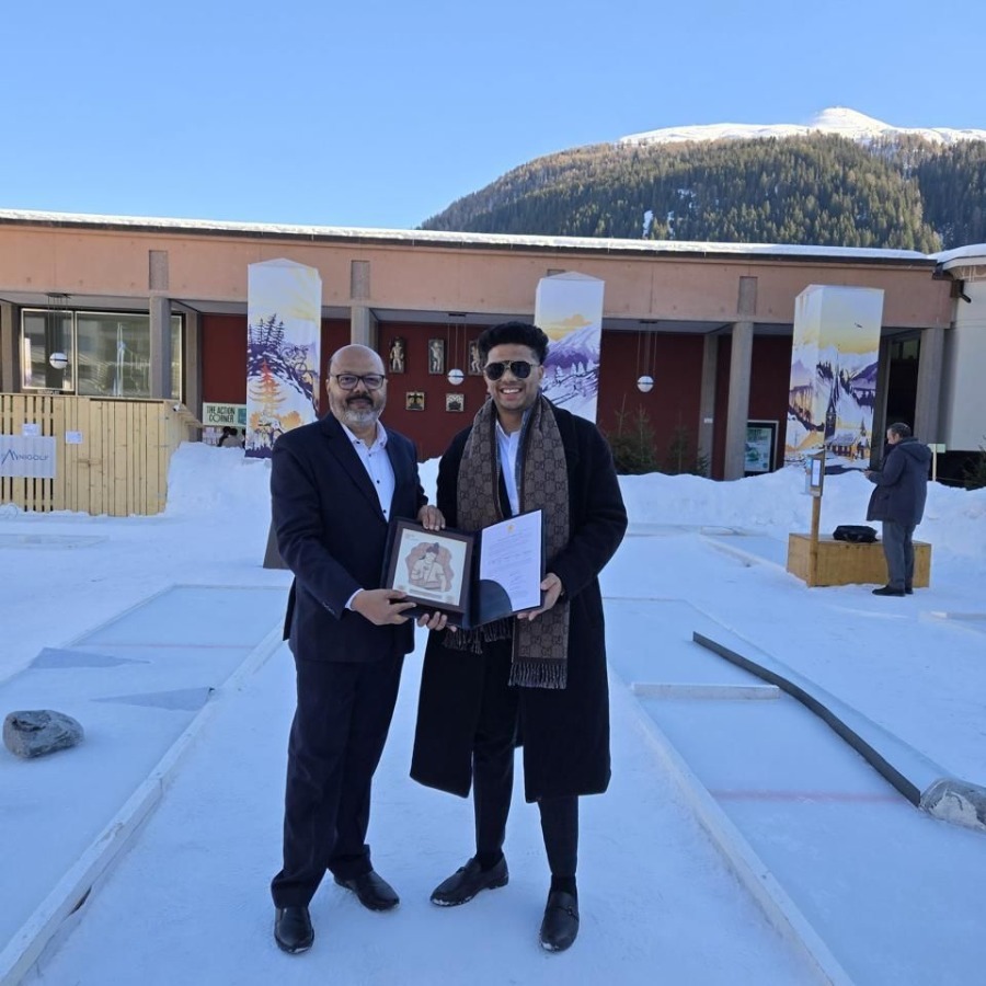 Honored to stand outside the Maharashtra Pavilion at the WEF Davos Summit—a hub of innovation